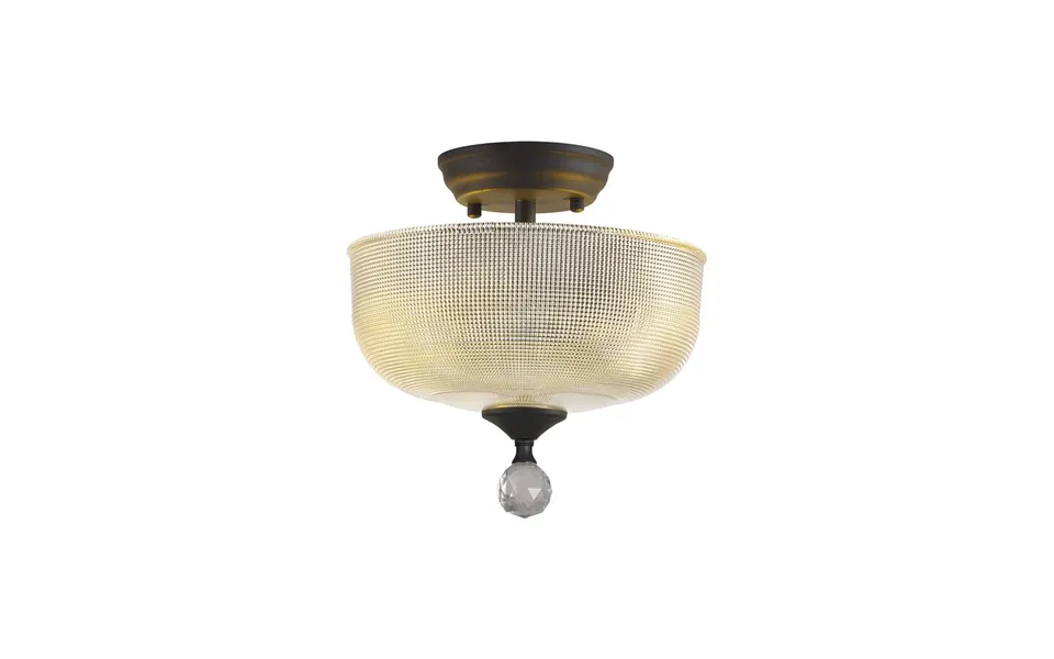 Sirius Flush Ceiling Light 2xe27 With Round 26.5cm Prismatic Effect Glass Shade Graphite Clear Luxuria only £ 120.60