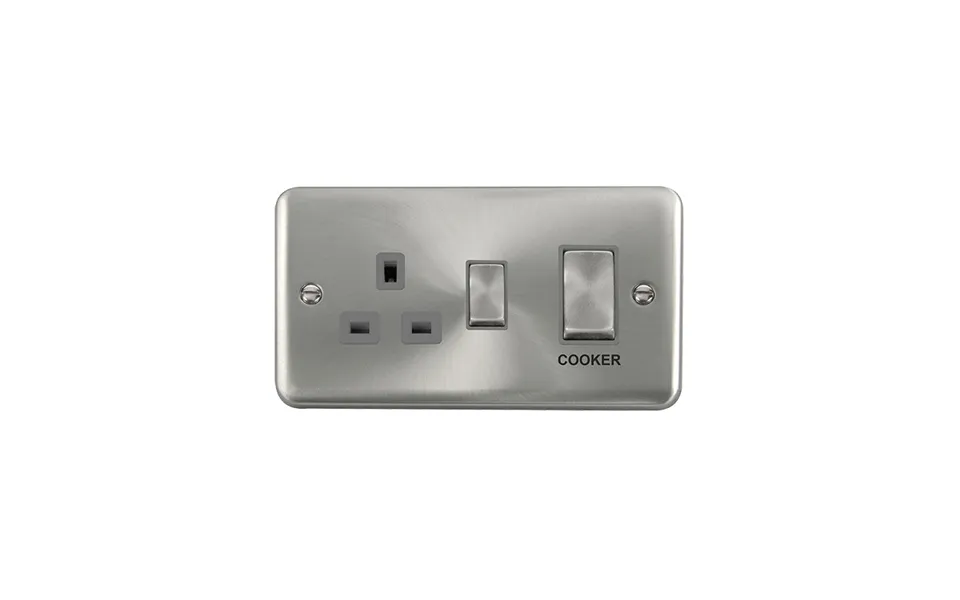 Click deco plus cooker control units dpsc504gy 50a ingot 2 gang double pole switch with 13a double pole switched socket outlet rounded profile satin chrome...show more
