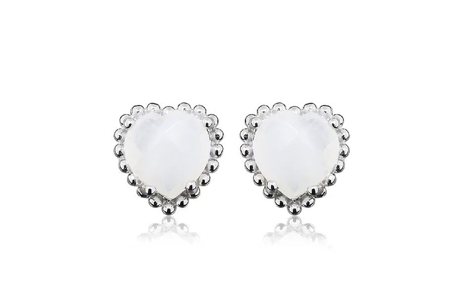 These silver & white chalcedony heart stud earrings have a heart-shaped white chalcedony set in a beaded silver setting. White chalcedony is associated with integrity...show more