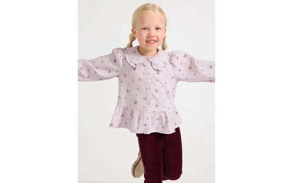 Long-sleeved blouse with a rounded collar and flounce details. Brand: Lindex