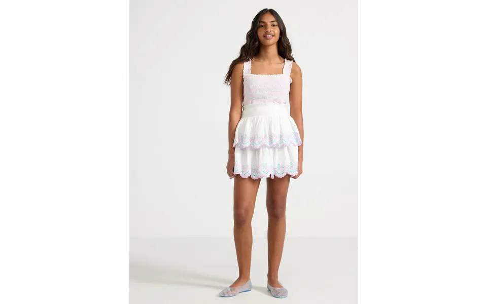 Woven flounce skirt in cotton with embroidery and smocked waist. Brand: Lindex