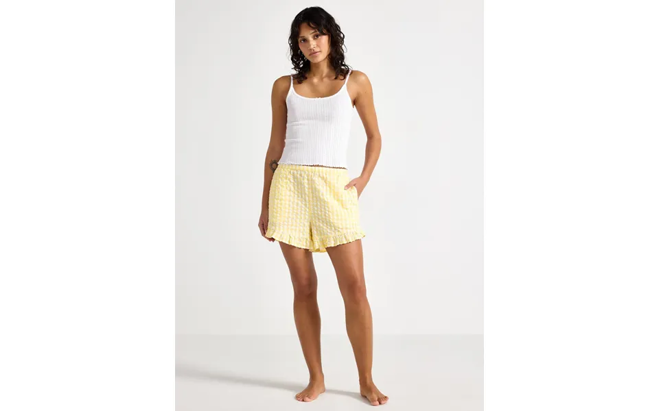 Soft pyjama shorts in seersucker with elastic waist and flounce. Brand: Lindex