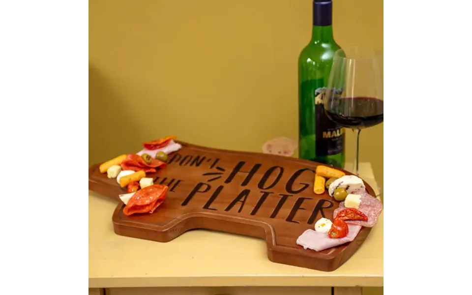 Add a playful touch to your gatherings with our delightful wooden charcuterie board shaped like a pig, engraved with the humorous slogan don't hog the...show more