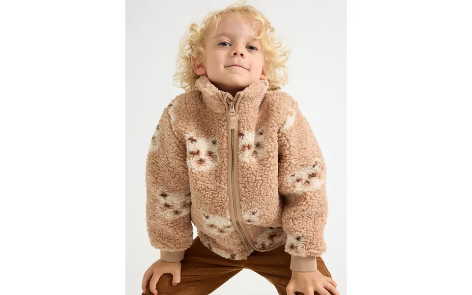 A warm and cosy pile jacket with side pockets and zipper to front.