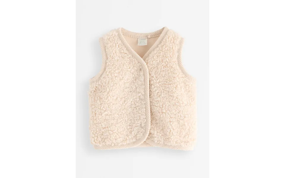 Pile vest featuring binding in cordroy and cosy jersey lining, complete with a press button closure for easy wear.