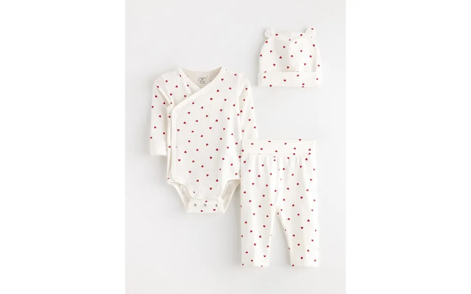Matching set in soft cotton jersey with a long-sleeved wrap bodysuit, leggings with a foldable waist and beanie. With our smart extended size solution the...show more