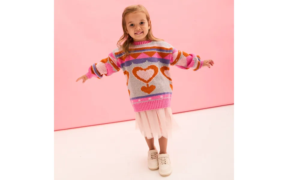 Unique intarsia heart design signature balloon sleeves british made lighter weight lofty feel yarn relaxed fit this style is oversized in shape. If you prefer a neater fit, you may want to try the size smaller available in matching adult oversized jumper it’s our first mini me