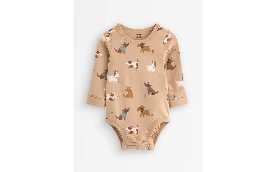 Comfortable long-sleeved bodysuit in soft cotton jersey. With our smart extended size solution the baby can grow a size and still keep the same garment.