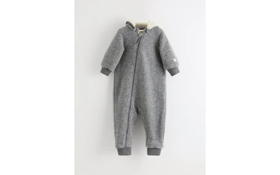A cosy overall in light grey wool blend with soft white pile lining. Made with 48% recycled wool.