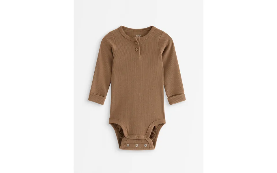 Soft long-sleeved ribbed bodysuit. With our smart extended size solution the baby can grow a size and still keep the same garment.