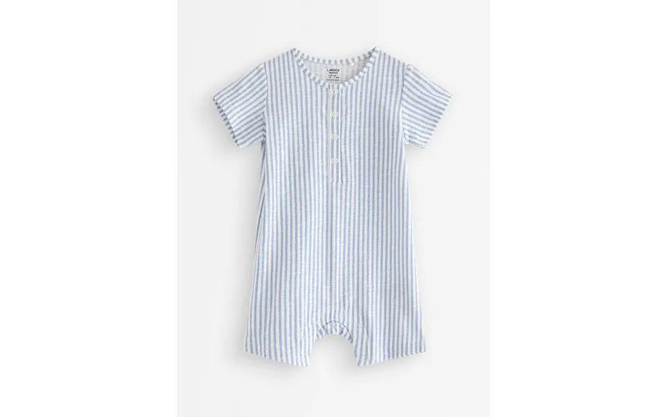 Short-sleeved romper in soft cotton jersey with buttoning at front and at crotch.