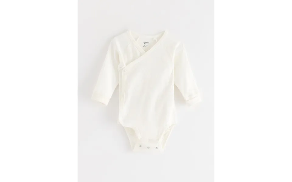 Long-sleeved wrap bodysuit in soft cotton with pointelle design. With our smart extended size solution the baby can grow a size and still keep the...show more