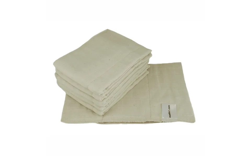 Muslinz 6 pack newborn unbleached organic cotton prefold nappy.Reusable, washable cloth nappy. 4-6-4 Layers of muslin unbleached,natural state fabric presewn to fold and use as...show more