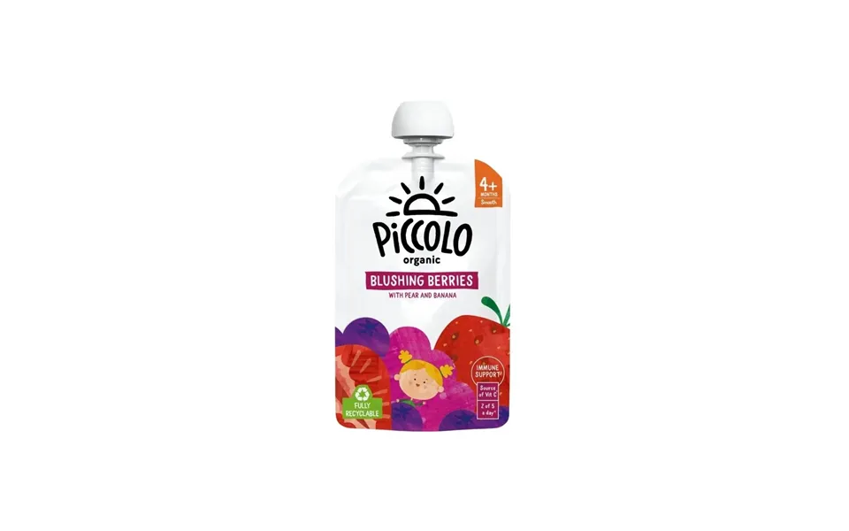 This product has a short shelf life and sells out quickly. New stock arrives every few weeks. Please purchase only for immediate use. Returns or refunds are not accepted for this item. Why buy me piccolo organic blushing berries pear and banana offers a completely organic, healthy, and delicious option for your little ones. With organic strawberries, pears, bananas, blueberries, and raspberries, it introduces babies to a variety of fruits early on. Enriched with acerola cherry, it provides a natural source of vitamin c to support the immune system. Free from sugar, salt, gluten,and dairy, it’s gentle on sensitive tummies. Its smooth texture makes it ideal for both first spoon experiences and afternoon snacks. Expert-approved for its balanced nutritional content. Brand : piccolo product type: baby food product subtype: baby fruit pots & fruit pouches age: 4 months product weight: 100g details: 2 of 5 a day source of vit c no added sugar dairy free gluten free vegan vegetarian nut free storage instruction: store in a cool dry place. Once opened, refrigerate and consume within 24 hours.
