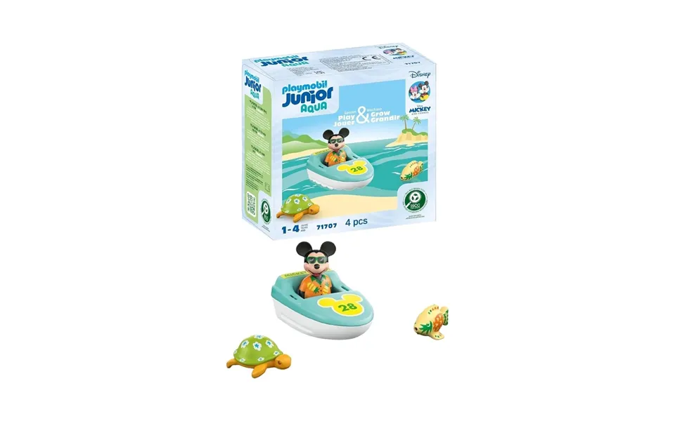Why buy me playmobil junior & disney 71707 mickey mouse's boat tour transforms bath time into an exciting adventure with a floating sports boat, an adorable hawaiian turtle, and a playful pineapple fish, children will enjoy a fun-filled water play experience. It supports fine motor skills and hand-eye coordination while being made from bpa-free and sustainable materials for a safe and engaging playtime. Brand : playmobil product type: activity toys product subtype: figurines & vehicle play sets age: 1 years features: contains 4 pieces. Floating design: the sports boat, hawaiian turtle, and pineapple fish can float on water. Fine motor skills: helps develop children's hand-eye coordination and fine motor skills. Safe & sustainable: made from bpa-free, sustainable, and plant-based plastic. Easy to clean: all parts except stickers can be rinsed under running water. Toddler-friendly: designed for small hands with rounded edges for a safe play experience.