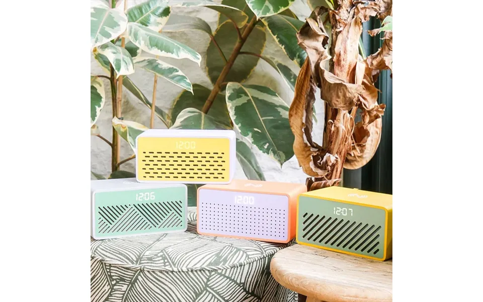 Introducing the steepletone rise mix wireless bluetooth speaker, the ultimate bedside companion that seamlessly blends convenience with style. This all-in-one device offers wireless phone charging, high-quality bluetooth audio, and a customizable alarm clock to enhance your mornings and evenings. Available in four vibrant colours yellow, orange, purple, and grey the rise mix adds a splash of colour to your space while providing essential features like adjustable brightness, a digital display, and multiple alarm modes. The rise mix makes staying connected and on time easier than ever. Its wireless charging feature powers your phone effortlessly, while the bluetooth audio delivers crisp, clear sound for music, podcasts, or audiobooks. With three alarm modes and an intuitive digital display, you can wake up exactly how you like. Plus, its compact and sleek design fits perfectly on any bedside table, making it as stylish as it is functional. Whether you're checking the time, temperature, or date, the rise mix has everything you need in one smart device.