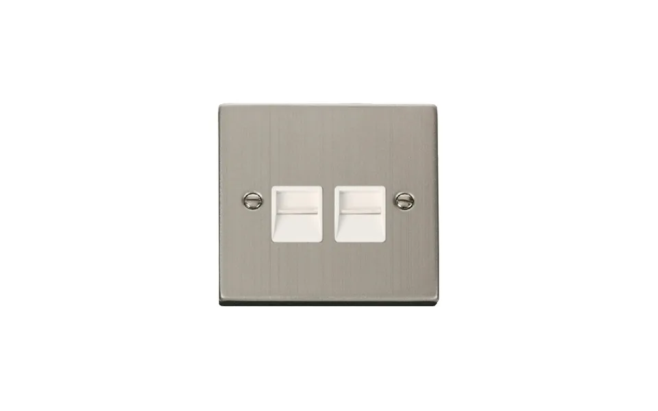 Click deco twin telephone socket outlet secondary stainless steel insert white