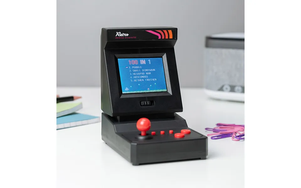 Revisit gaming nostalgia with the rad5 retro desktop arcade packed with 100 classic games displayed on a vibrant lcd screen, this nifty unit brightens any desk and turns work into playtime. Its compact design fits perfectly in your workspace, or simply grab it for some fun on the go this quirky gem is bound to bring smiles wherever it lands. This little marvel, powered by just three aaa batteries, is spontaneous and incredibly easy to set up. Dive into retro vibes and let the games unfold, whether you’re on a break or just craving some excitement. With user-friendly controls and a sleek exterior, it effortlessly makes any gaming corner more inviting while sparking friendly competition among pals. Whether you're reigniting fond memories or sharing the thrill with a new generation, this mini arcade is a joyful surprise that delivers laughter and excitement. Connect with your inner child and indulge in endless hours of fun, making it the ideal quirky gift for any gaming fan