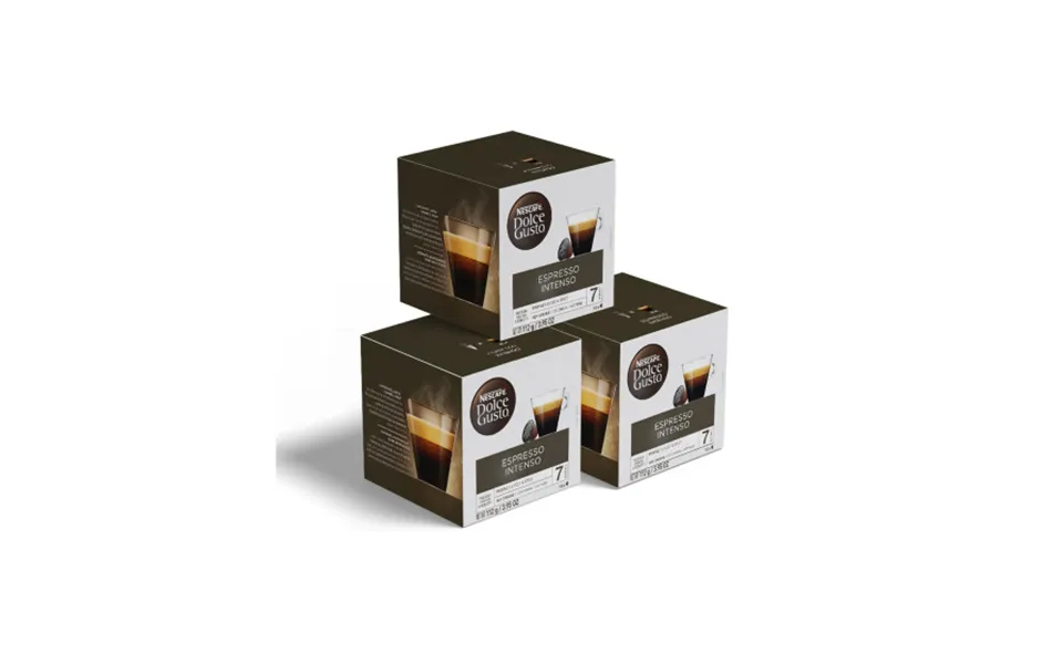 Discover nescafé dolce gusto espresso intenso, an intense, medium-dark roast coffee with fruity and spicy notes, a smooth body and a generous velvety crema. Talented coffee creators from nescafé dolce gusto have combined fruity colombian arabica coffee beans with robusta coffee beans, creating unique and aromatic nescafé dolce gusto espresso coffee. Create professional quality coffee using nescafé dolce gusto capsule coffee machines with maximum 15 bar pump pressure. Coffee freshness is preserved in hermetically sealed capsules, so you could enjoy rich coffee aroma every time. Features:- strong, medium roasted coffee with the intensity of 7 out of 11. Best served in a short cup at 50 ml .- Intense flavour with notes of summery red berries, contrasted with spicy hints of pink pepper. Topped with rich, velvety crema. - The blend of intense robusta coffee beans and fruity arabica beans from colombia. - Coffee freshness is preserved in hermetically sealed capsules, specially made for nescafé dolce gusto capsule coffee machines, so you could enjoy rich coffee aroma every time.- 16 Capsules for 16 nescafé dolce gusto espresso intenso coffee cups. Ingredients:roasted and ground coffee.