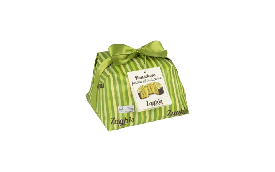 Naturally leavened, oven-baked panettone with a delicious pistachio cream filling and white chocolate flakes.Treat yourself or your loved ones to an exquisite, gorgeously packaged panettone with a luxurious pistachio cream filling and heavenly white chocolate flakes.- Natural flavours- made with free-range eggs, milk, and wildflower honey from italy- with a delicious pistachio cream fillingingredients: wheat flour, pistachio cream 14% glucose syrup, sugar, water, pistachio paste 20%, natural flavours, skimmed milk powder, sunflower oil, coconut oil, cocoa butter, salt, thickener: pectin, preservative: potassium sorbate, emulsifier: mono- and diglycerides of fatty acids, colours: calcium carbonate, carrot, pumpkin and spirulina concentrate , sugar, water, butter milk , glaze 6% sugar, hydrogenated vegetable fat palm, coconut , skimmed milk powder, lactose, emulsifier: soy lecithin, flavours , sourdough 6% wheat , egg yolks, eggs, white chocolate flakes 2% sugar, whole milk powder, cocoa butter, emulsifier: soy lecithin, flavours , pistachio grains 2%, emulsifier: mono- and diglycerides of fatty acids, wildflower honey, whole milk, malted wheat flour, salt, natural flavours. May contain traces of mustard and other nuts. Storage conditions: store in a cool, dry, dark place. Keep sealed after opening.