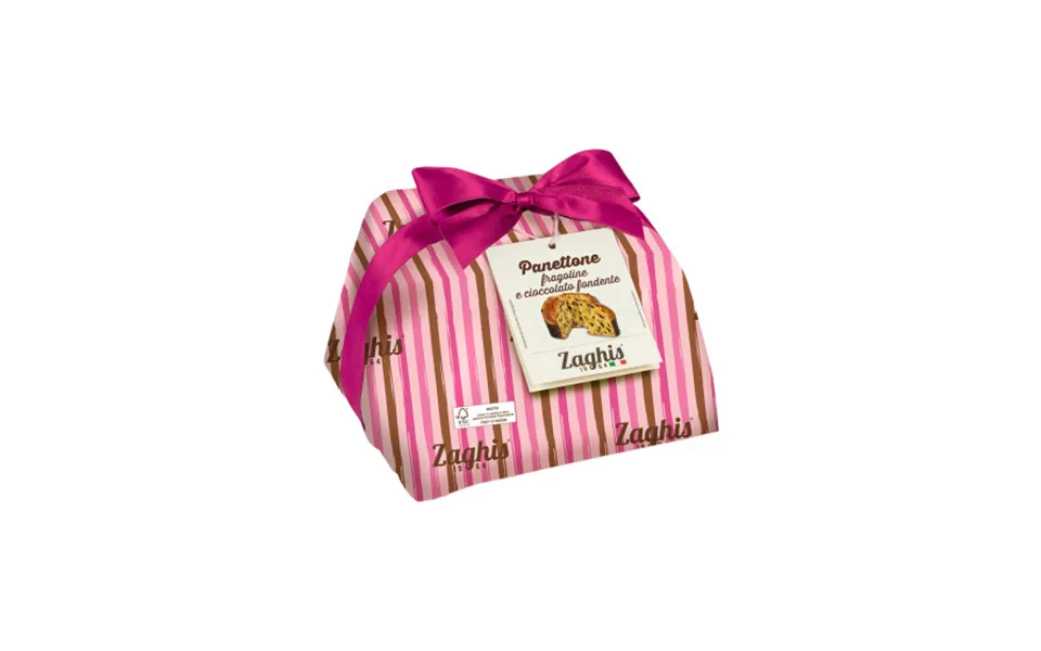 Naturally leavened, oven-baked panettone with candied strawberries and dark chocolate chips without candied citrus peels or raisins .Soft, melt-in-your-mouth dough enriched with delicious semi-candied strawberries and dark chocolate chips. This refined, gorgeously packaged panettone is bound to satisfy the pickiest of connoisseurs.- Natural flavours- made with free-range eggs, milk, and wildflower honey from italy- with semi-candied strawberries and delicious dark chocolateingredients: wheat flour, water, butter milk , sugar, semi-candied wild strawberries 7% strawberries, sugar, acidifier: citric acid , dark chocolate chips 5% cocoa mass, sugar, emulsifier: soy lecithin, natural vanilla flavor , egg yolk from free-range hens, natural yeast wheat 4%, emulsifiers: mono- and diglycerides of fatty acids italian eggs from free-range hens, wildflower honey, fresh whole italian milk, salt, malted wheat flour, flavorings, cocoa butter. May contain traces of mustard and nuts. Storage conditions: store in a cool, dry, dark place. Keep sealed after opening.