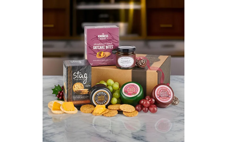 Indulge in the ultimate cheese experience with our luxurious cheese hamper, crafted to elevate any special occasion to new heights of culinary delight. Inside, you'll discover a curated selection of three artisan english cheeses, each meticulously chosen for its exceptional flavor profile and sumptuous texture. From creamy bries to tangy cheddars, every bite promises to tantalize your taste buds and leave you craving more. But that's not all our cheese hamper also includes a selection of crunchy crackers and a zesty chutney, perfectly complementing the rich, creamy cheeses and adding depth and complexity to every mouthful. Whether you're hosting a sophisticated soirée or simply treating yourself to a gourmet feast, this exquisite combination of flavors is sure to impress even the most discerning palate. With its elegant presentation and exquisite contents, our cheese hamper makes an unforgettable gift for any cheese connoisseur or food lover in your life. Whether it's a birthday, anniversary, or just a thoughtful gesture to show someone you care, this exclusive hamper is guaranteed to leave a lasting impression and create cherished memories for years to come.