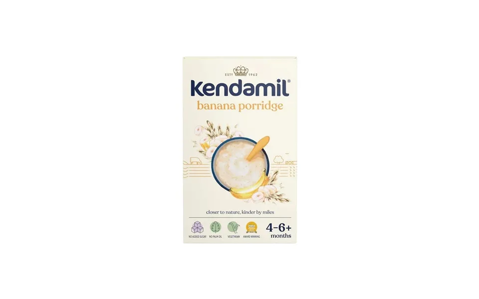 Why buy me our banana porridge contains the very best of nature. We don’t do palm oil, fish oil or added sugar. What we do do is real fruit, creamy milk, high quality grains and essential vitamins and minerals. Simple. Brand: kendamil product type: baby food product sub-type: porridge & cereal how to use contains approximately 7 servings per pack. Keep the packet closed after use and store in a fresh and dry place. Once opened, consume before 1 month. Step 1 put approximately 2 tablespoons 20g of porridge in a bowl. Then add approximately 4 tablespoons 60ml of warm recently boiled water. Use as part of a varied weaning diet. Step 2 stir well and allow to cool, then check temperature before serving. Let your baby's appetite guide you and adjust the amount fed depending on their needs. The consistency can be altered by adding more or less water. Age: 4 months details: no added sugar: kendamil uniquely uses whole milk as a source of fat no palm oil: kendamil has and will never used palm oil vegetarian: kendamil creamy baby porridge is veggie friendly award winning: mums across the uk love our kendamil porridges real fruit: we use real fruit