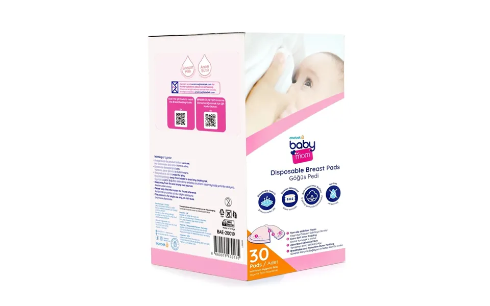 Why buy me baby mom breast pad makes you feel safe against milk leaks during breastfeeding with its 100% ultra-soft and cottony texture, it prevents irritation caused by moisture and friction and allows the skin to breathe. It is made from 100% natural filling materials. Brand: baby mom product type: nursing product sub-type: nursing pads how to use keeping your breast moist may cause infection. Thanks to the baby mom breast pad, you can trap milk leaks and prevent nipple sores and infections. Don't forget to ventilate your chest frequently and change your chest pad frequently to keep your chest dry functionality: thanks to its absorbent cellulose feature, it prevents clothes from staining by trapping leaked breast milk inside the pad. Thanks to its thin structure, it cannot be seen through clothes. It has stabilizer bands that prevent slipping. It does not cause any discomfort thanks to its extra soft inner padding. It does not cause sweating thanks to the breathable outer padding. Made in türkiye baby mom is an ebebek brand. Details: it does not contain gel. Dermatologically tested. What causes nipple wounds and cracks nipple sores and cracks are usually caused by the baby's inability to latch on to the breast correctly. At this point, you should make sure that you are breastfeeding effectively.