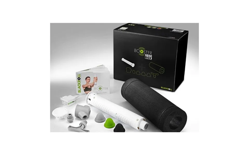 Blackroll booster head box takes massage and vibration therapy to a whole new level. Whether you want to enhance regeneration after exercise, warm up tense muscles or to treat painful spots, you ll find everything you need in the blackroll booster head box. The box contains blackrolls booster, which can be combined with the included slim roll, to make a foam roller which vibrates by itself to increase the effect. The box also contains the booster head-set, which can transform booster into a massage gun, which can provide pressure point massage and loosen tight muscles or reduce pain.