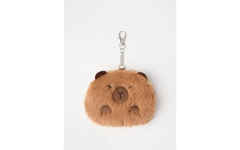Small fluffy purse with a zip closure, perfect as bag decoration.