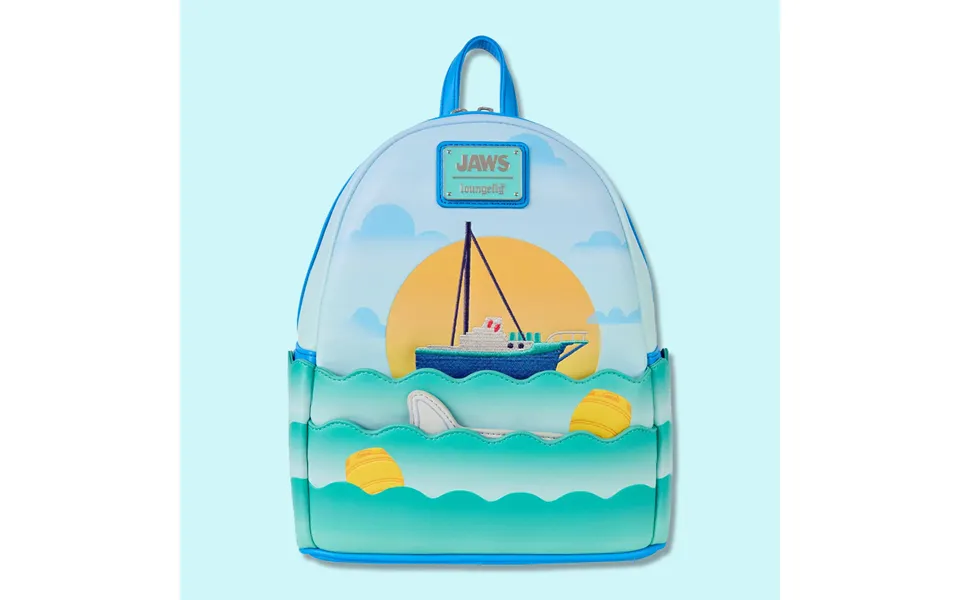 Dive into nostalgia with the universal jaws loungefly mini backpack, created to celebrate the iconic film’s 50th anniversary. This stylish mini backpack captures the thrilling spirit of jaws with a stunning sunset ocean scene, complete with a distant boat silhouette. Adding a playful touch, the applique shark moves up and down among the embroidered waves, bringing the legendary predator to life in a unique and eye-catching way. Made from high-quality faux leather, this durable mini backpack is designed for both fans and fashion lovers alike. Practical features include adjustable straps, a sturdy top handle, a front zipped pocket, and convenient side drop pockets perfect for storing all your essentials while out and about. The bag’s embossed, embroidered, and printed details give it a rich texture and premium feel, making it a standout accessory for summer festivals, beach days, or everyday wear. With a coordinating interior lining that complements the vibrant exterior, this jaws loungefly mini backpack is a must-have for any film enthusiast or collector. Celebrate half a century of cinematic suspense with this playful yet sophisticated tribute, perfect for adding a splash of adventure to your wardrobe.