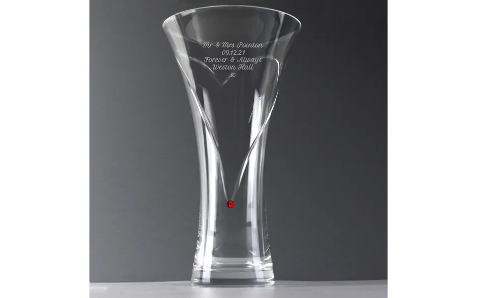 Celebrate love and milestones with the personalised hand cut ruby diamante heart vase, a perfect gift for a 40th ruby wedding anniversary or a stylish birthday present. This elegant vase features a sleek design that sparkles beautifully in the light, thanks to the dazzling ruby diamante accent that adds a luxurious touch. Handcrafted with care, the vase boasts a fluted top, a sturdy thick base, and a striking heart outline that highlights the ruby gem at its centre. The timeless design makes it a meaningful keepsake to cherish for years to come. Personalise the vase with a message of up to four lines and a year, making it truly one-of-a-kind. To maintain its pristine quality, it is recommended to hand wash only. This exquisite vase is not just a gift but a heartfelt expression of love and celebration. Personalisation: message line 1 20 characters max. Message line 2 20 characters max. Message line 3 20 characters max. Message line 4 20 characters max. Year on vase yyyy format, 4 characters max. Please note: this item will be personalised exactly as you have written so please double check spelling, punctuation and use of capital letters personalised products can only be returned if they are faulty do not include accents and special symbols as some of our processes will not allow this due to the font type used please do not use all capitals in your personalised message, or the personalisation will be very difficult to read