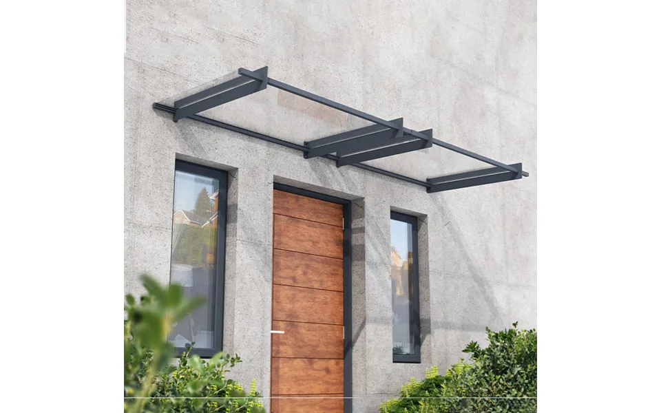 An attractive way to protect your door from weather damage and keep visitors dry, the 10 x 3 palram canopia nancy 3000 door canopy in grey 3.01M x 0.94M is easy to instal, effortless to maintain, and comes with a stylish contemporary design.Featuring crystal-clear 4mm acrylic panels, this front door canopy is completely shatterproof and allows 92% light transmission. It blocks harmful uv rays and is 100% uv protected too, so will maintain its attractive appearance above your door and neither discolour nor fade in the sun. The laser-cut, powder-coated galvanised steel brackets are robust, durable and completely resistant to rust.This over door canopy is wind resistant to 100km&sol hr 62ml&sol hr and snow-load tested to 75kg&sol m 15.4Lbs&sol ft , so really does offer your door exceptional weatherproof protection.Pre-cut panels, pre-drilled profiles and mounting hardware are all included to help you achieve a straightforward assembly, without the need for specialist tools. A smart and fast locking system means screws are not required, eliminating the risk of leaks.This door porch canopy is constructed from 100% recyclable materials and supplied with a 3-year limited warranty. It is completely maintenance free, saving you both time and money.You can purchase this door canopy in various sizes.Free delivery is available to most uk postcodes.Crystal-clear, shatterproof 4mm acrylic panels allow 92% light transmissionlaser-cut, powder-coated galvanised steel bracketswind resistan...