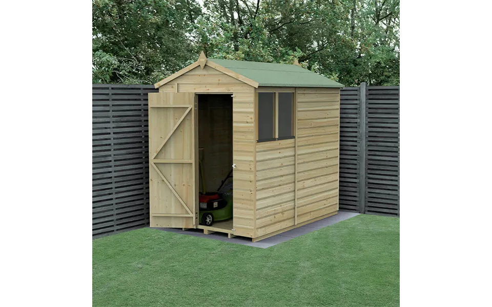 If you want to buy a great british shed that offers more than just plain, old garden storage, choose a forest beckwood 25yr guarantee shiplap pressure treated shed. A weather beating home for your tools, bicycles, fishing tackle and more, this particular model is the 7x5 apex shed 2.18M x 1.64M , and here's what makes it special...Modular design, pressure-treated wood and the longest guarantee on the marketthis garden shed is expertly designed and built by britain's leading manufacturer of wooden sheds. Pressure treated and supplied with an extraordinary 25-year anti-rot guarantee, which is the longest guarantee on the market, the wood will never need retreating against rot, sparing you the inconvenience of costly, time-consuming maintenance and providing you with an unbeatably durable shed.Featuring a complete modular design, this garden shed is delivered to you in smaller sections of interchangeable panels, so you'll find it much easier to assemble than other wooden sheds. This modular design also allows you flexibility with door and window placements, helping you customise the shed to your exact requirements. What's more, with 30% thicker framing, this garden shed isn't just easier to assemble and more versatile than other wooden sheds, it's far stronger too.A robust, weathertight and supremely stylish shedthe walls are constructed from 12mm shiplap tongue and groove cladding, on a 28 x 56mm frame, making for a robust and durable garden building. The tightly-interlocki...