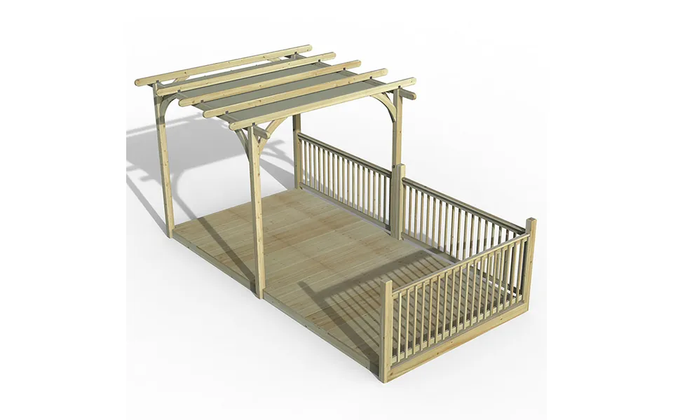 Now you can enjoy the outdoor lifestyle, come rain or shine, with the 8 x 16 forest pergola decking kit with retractable canopy no. 7 2.4M x 4.8M . This wooden decking creates the ultimate setting for dining alfresco with the family or throwing garden parties for friends.This pergola and garden decking set is beautifully built from fsc -certified wood, which is the world's most trusted mark for sustainable forestry. Pressure treated and supplied with a superb 15-year anti-rot guarantee, no further treatment is required, saving you money and leaving you more time to enjoy life in your garden. A sumptuous smooth-planed finish rounds off the decking's exceptionally attractive appearance.Featuring a pergola, showerproof retractable canopy, 8x16 decked area and 3 x 8ft balustrades approximate measurements , this decking kit offers the perfect backdrop to all of your outdoor entertainment plans.Delivered to you flat packed, it includes fixings and instructions to help you achieve a straightforward assembly. Please be advised that you can lay the decking directly onto a patio, should you desire.Choose a forest pergola deck kit from a huge range of designs, and various sizes