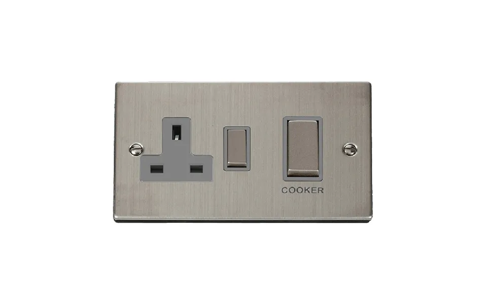 Click deco 45a ingot dp switch with 13a switched socket stainless steel insert grey