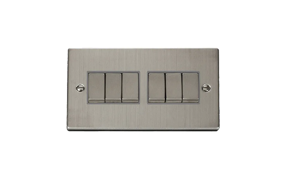 Click Deco 6 Gang 2 Way Ingot 10ax Switch Stainless Steel Grey Inserts
