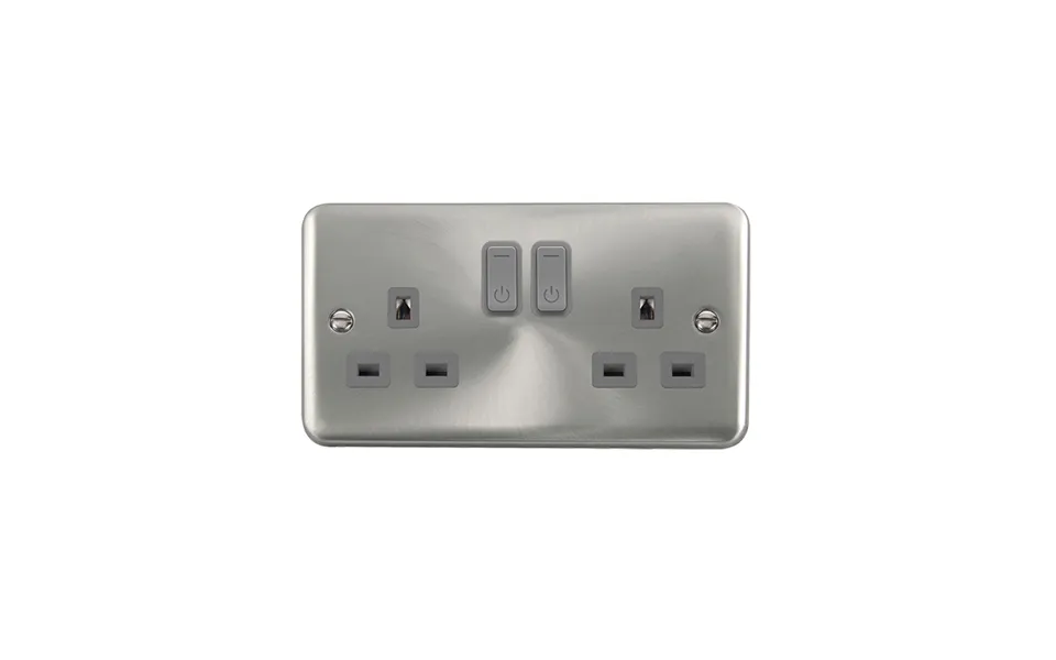 Click 13a 2 Gang Satin Chrome Smart Socket Insert Grey