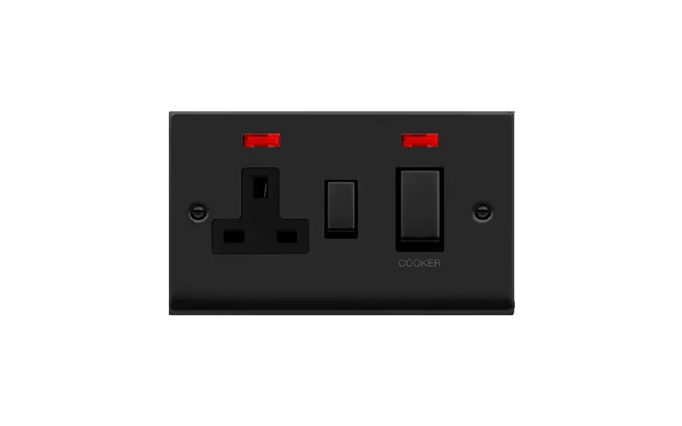 Click deco 45a ingot dp switch with 13a switched socket and neons matt black insert black