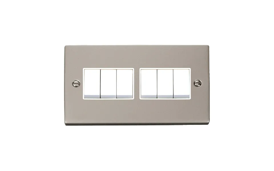 Click deco 6 gang 2 way 10ax switch pearl nickel white inserts