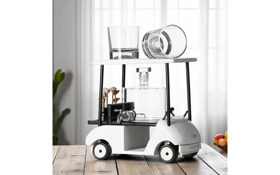 Bring your home bar to life with the fabulous golf cart buggy decanter set, a whimsical masterpiece that combines your love of golf with luxurious drinking. Shaped like a classic golf cart, this decanter is not just a visual delight its clear glass body showcases your favourite spirits in style, making every pour feel like a celebration. Delight friends and family as you share a dram of your preferred whisky, bourbon, scotch, or rum, turning any gathering into a memorable experience. This charming set comes complete with two exquisitely etched glasses, adorned with golf-themed designs that harmoniously complement the decanter. Perfectly sized for enjoying a stiff drink after a game or simply while regaling tales of your finest swings these glasses lend a touch of elegance to any occasion. Together, they serve as a striking centrepiece, whether in your home bar, man cave, or stylish lounge. Ideal for golfers, retirees, or anyone with a flair for unique barware, the golf cart buggy decanter set makes for an unforgettable gift. Bring a playful flair to your celebrations as you toast to great rounds on the course. With every sip, you’re not just enjoying a drink you're partaking in a delightful game-themed experience that’s sure to impress anyone who sets eyes on this extraordinary ensemble.