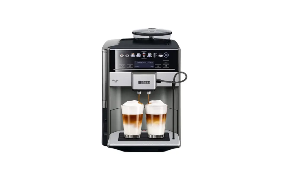 The bean-to-cup coffee machine siemens eq6 plus s500 prepares all of the most popular coffee drinks, including americano, cortado and even flat white, at the touch of a button. Thanks to the built-in one touch double cup feature, you can brew 2 servings of any beverage at once. The iaroma system ensures flawless taste. Using the favourites function, you can create and save up to 2 personalised beverages. Intuitive and simple operation, as well as automatic maintenance programs, make it easy to enjoy delicious coffee every day.9 Coffee drinks at the touch of a buttonthe coffee machine prepares espresso, espresso macchiato, black coffee, cappuccino, latte macchiato, latte, americano, cortado and flat white at the touch of a button. One touch double cup functionprepare two servings of latte macchiato or cappuccino at once favourites : create and save up to 2 personalised beveragesuse the favourites feature to select any drink, adjust the settings, and save it in a separate favourites menu. This way, you can create up to 2 recipes that are completely your own automatic, easy-to-clean milk systemthe coffee machine boasts an extremely convenient milk system with an integrated milk tube that can be inserted directly into a milk carton. The automatic milk system rinsing program called automilk clean efficiently rinses the milk system after each preparation of a milk-based beverage.Intuitive operation with the help of the coffeeselect displayevery option can be seen clearly in the...