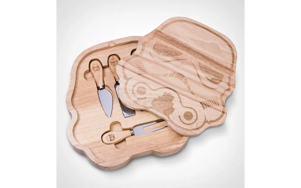 Ah, the stormtroopers. Iconic characters from the much loved film series star wars, they get a pretty hard time for their less-than-accurate shooting abilities. They were certainly no boba fetta, and their aim could have been a lot cheddar brace yourself for more awful puns . They're even now technically homeless since the destruction of the death star there’s de-brie everywhere . One thing i think we can all agree on is that their fancy suits look awesome, so if there's ever any stormtrooper merchandise on offer it's hard for us to say no this super cool cheese board is the latest kitchen accessory with a star wars twist. They are made by the shepperton design studios who created the original design way back in 1976, so you are guaranteed the same quality that went into the original mold’ all those years ago the helmet design has been laser-engraved on to the cherry wood board and comes complete with stilton knife, hard cheese knife and cheese fork, all handily hidden under the board when not in use this makes a great gift for a star wars fan who thinks they have it all, however as this stormtrooper cheese board proves, there’s stilton’s left