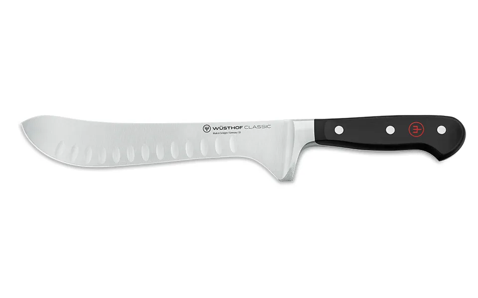 Wusthof's best-selling collection for generations, classic full-tang knives are precision-forged from a single piece of an exclusive high-carbon stainless steel. Classic knives feature a new handle design made of a highly durable synthetic material polyoxymethylene pom which has a tighter molecular structure to resist fading and discoloration.Precision-forged from a single blank of high carbon stainless steelfull tang that is triple riveted to the handle for precise controlprecision edge technology petec yields a blade that is 20% sharper with twice the edge retention.Tempered to 58 rockwellcomfortable and highly-durable polyoxymethylene pom handle with a traditional look and feel, stickered with our red trident logofull bolster and finger guard