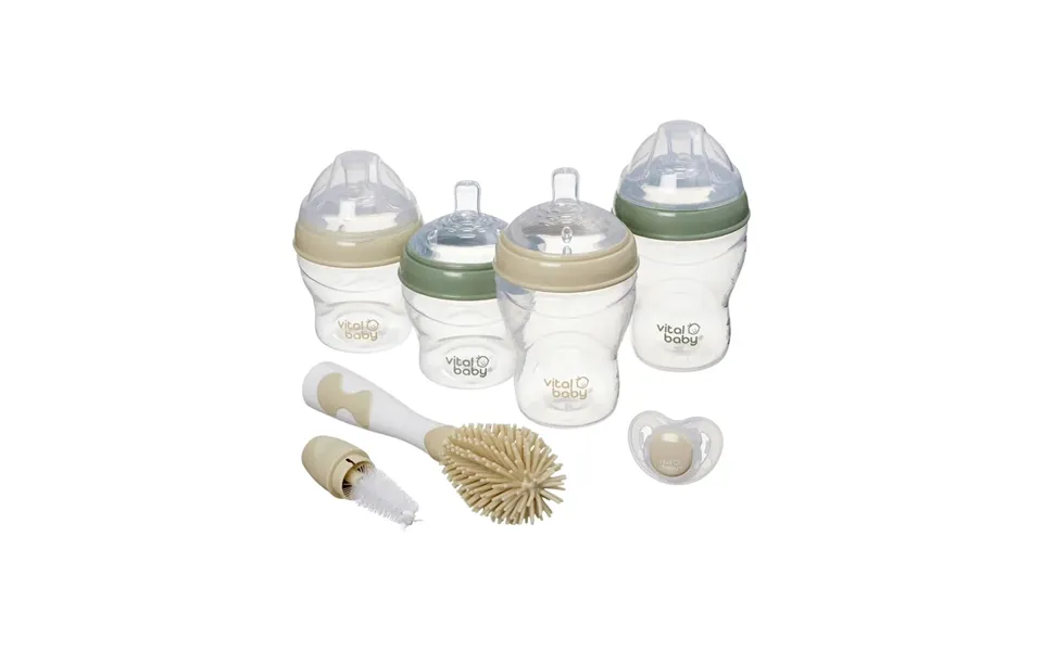 Why buy me vital baby nurture breast like starter set is designed for newborn feeding the triple anti-colic valve system reduces air intake, ensuring a more comfortable feeding experience for your baby, while the specially designed flattened teat mimics the natural feel of a mother’s breast, promoting easy latching. The teat moves and flexes just like mum’s nipple, making the transition between breast and bottle as natural as possible. The bottles can be hygienically sterilised in just three minutes in the microwave, saving you valuable time. The set also includes a non-scratch bottle brush and an integrated teat brush for thorough cleaning, even in hard-to-reach areas. Made from bpa, latex, and phthalate-free materials, this set provides a complete and safe feeding solution for both you and your baby brand : vital baby product type: bottle feeding product subtype: bottles age: 0 months what is included in the package 2 x 150ml biodegradable bottles 2 x 240ml biodegradable bottles 4 x newborn flow teats expertly designed to mimic mum’s nipple 1 x bottle & teat brush with a non-scratch bristle design for easy cleaning 1 x biodegradable boother with an airflow shield to prevent irritation features: triple anti-colic valve system reduces air intake, helping your baby feed more comfortably. Breast-like flattened teat supports the baby's natural latching reflex. Flexible and movable teat, mimicking the natural movement and stretch of a mother’s nipple for a more natural feedin...
