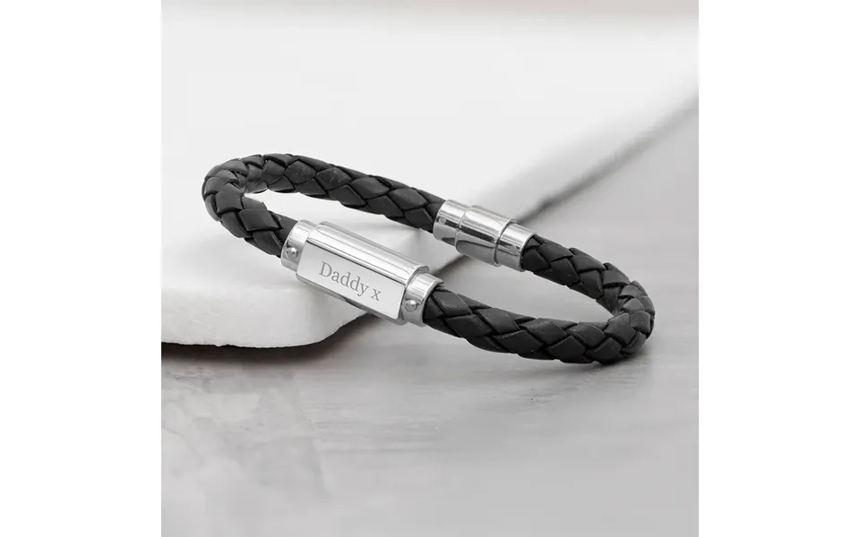 Gift a touch of sophistication with our personalised luxury men’s leather bracelet, designed for the fashion-conscious gentleman. This exquisite piece features a sleek metal name plate and is crafted from twisted leather paired with polished stainless steel, ensuring both durability and a timeless style. It’s a statement accessory that effortlessly elevates any outfit, making it perfect for any occasion, whether it's a special night out or a casual day. Personalise this standout bracelet with a special date, name, or initials, and let your loved one enjoy a truly unique and meaningful gift. Our talented team will carefully engrave your chosen details onto the metal plate, creating a piece that not only looks stylish but also holds sentimental value. With its precision craftsmanship and elegant design, this leather bracelet is the ultimate birthday gift for that dapper man in your life. Celebrate his individuality and style with a present that exudes class and sophistication. Personalisation: name or date 12 characters max. Please note: this item will be personalised exactly as you have written so please double check spelling, punctuation and use of capital letters personalised products can only be returned if they are faulty do not include accents and special symbols as some of our processes will not allow this due to the font type used please do not use all capitals in your personalised message, or the personalisation will be very difficult to read