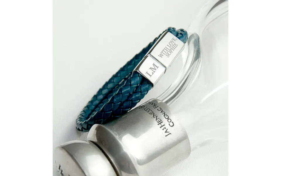 This dual leather woven bracelet in vibrant teal can be personalised in two ways, initials and a short message. The bracelet is made from treated, hard-wearing woven leather and has a distinctive clasp for added security as well being easy to wear. The leather bracelet is the perfect gift for a father, husband or friend. This bracelet is hardwearing and sturdy but please do no expose to water to ensure it's perfect condition is maintained. Personalisation: initials on left 3 characters max. Message on right 20 characters max. Please note: this item will be personalised exactly as you have written so please double check spelling, punctuation and use of capital letters personalised products can only be returned if they are faulty do not include accents and special symbols as some of our processes will not allow this due to the font type used please do not use all capitals in your personalised message, or the personalisation will be very difficult to read