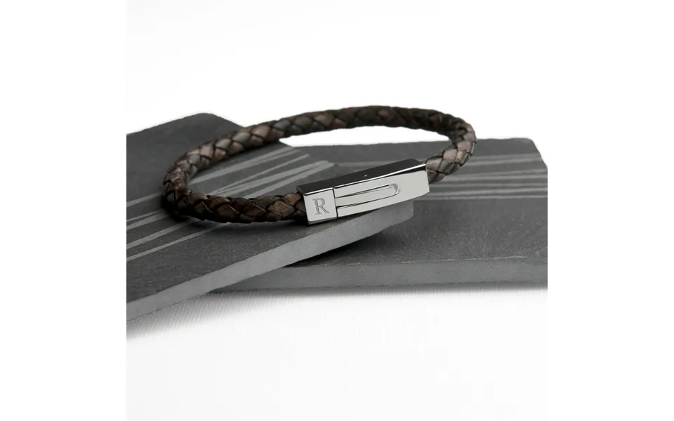 A effortlessly stylish men's leather bracelet with eye catching clasp and design. The bracelet is made from treated, hard-wearing woven leather and has a distinctive tube clasp for added security as well being easy to wear. With two knotted woven leather straps this bracelet stands out from the rest the leather bracelet is the perfect gift for a father, husband or friend. This bracelet is hardwearing and sturdy but please do no expose to water to ensure it's perfect condition is maintained. Personalisation: initials 3 characters max. Please note: this item will be personalised exactly as you have written so please double check spelling, punctuation and use of capital letters personalised products can only be returned if they are faulty do not include accents and special symbols as some of our processes will not allow this due to the font type used please do not use all capitals in your personalised message, or the personalisation will be very difficult to read