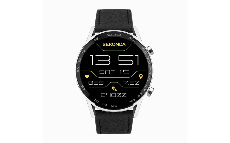 This active plus smart watch features an ion-plated silver alloy case with a 1.5 Inch, fully interactive touch screen display. Features include step distance calorie...show more