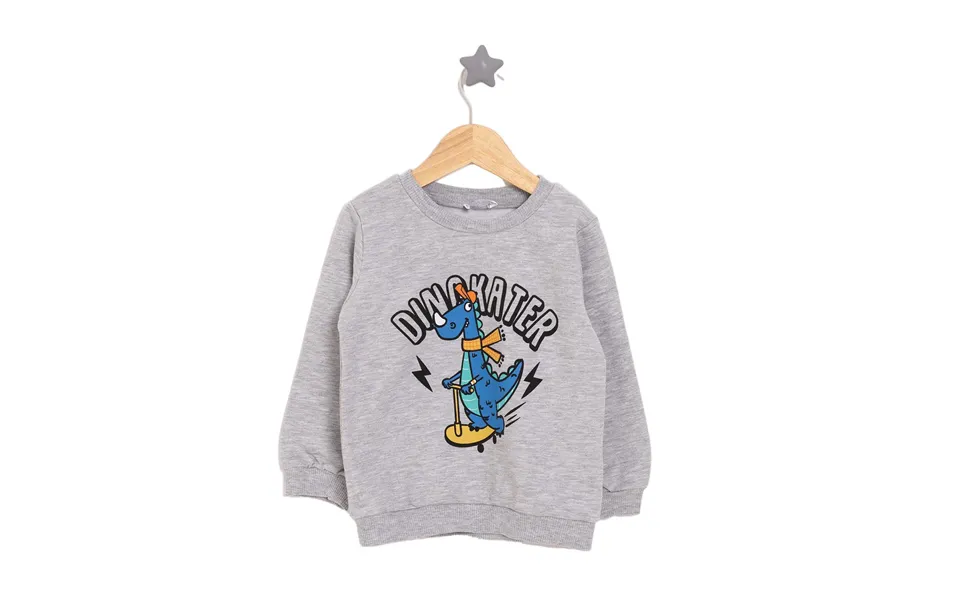 Hellobaby Basic Low Raised Dinokater Printed Sweatshirt - Grey Melange see the best price